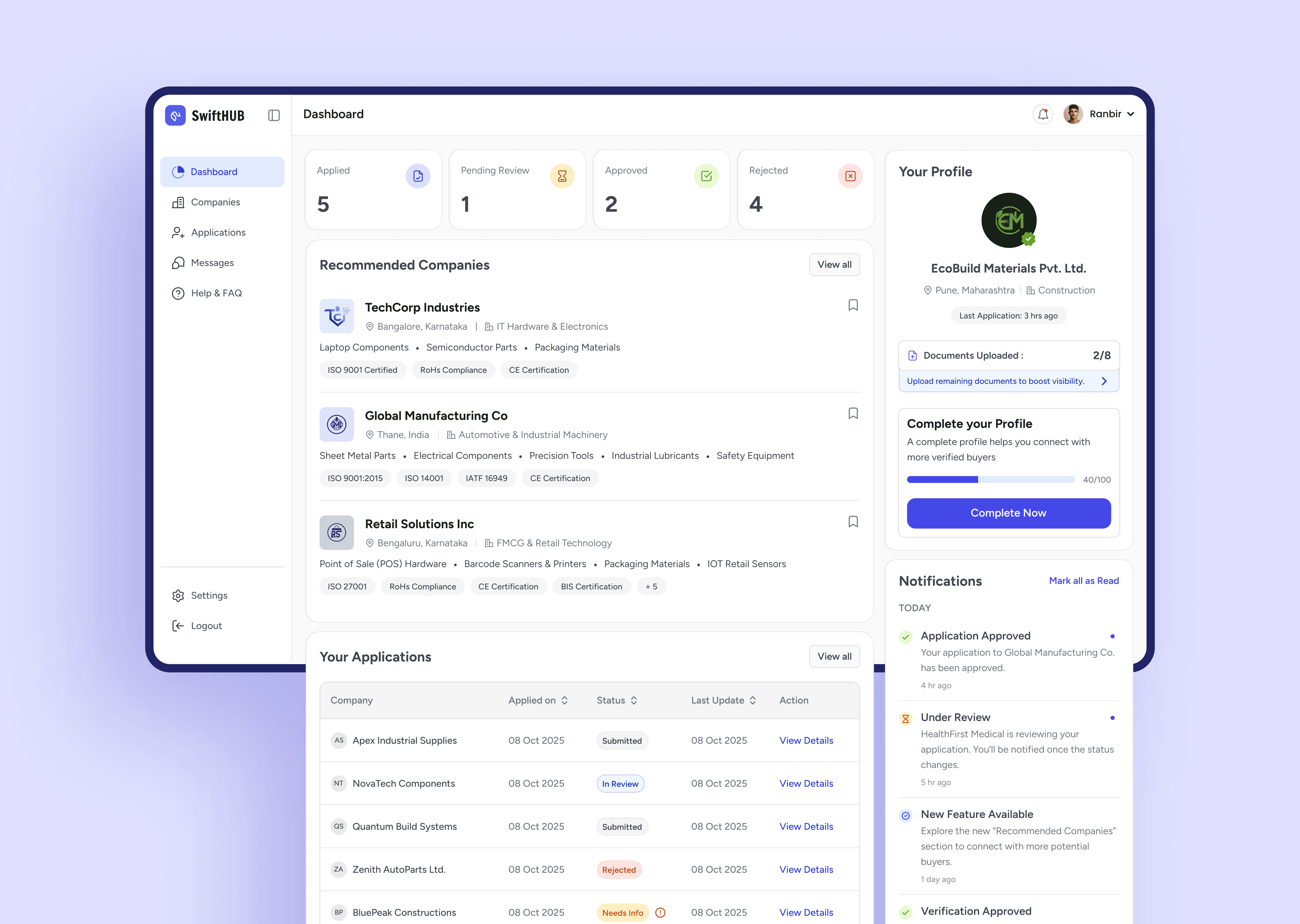Supplier onboarding and application workflow designed to reduce operational friction and support high-volume operations.