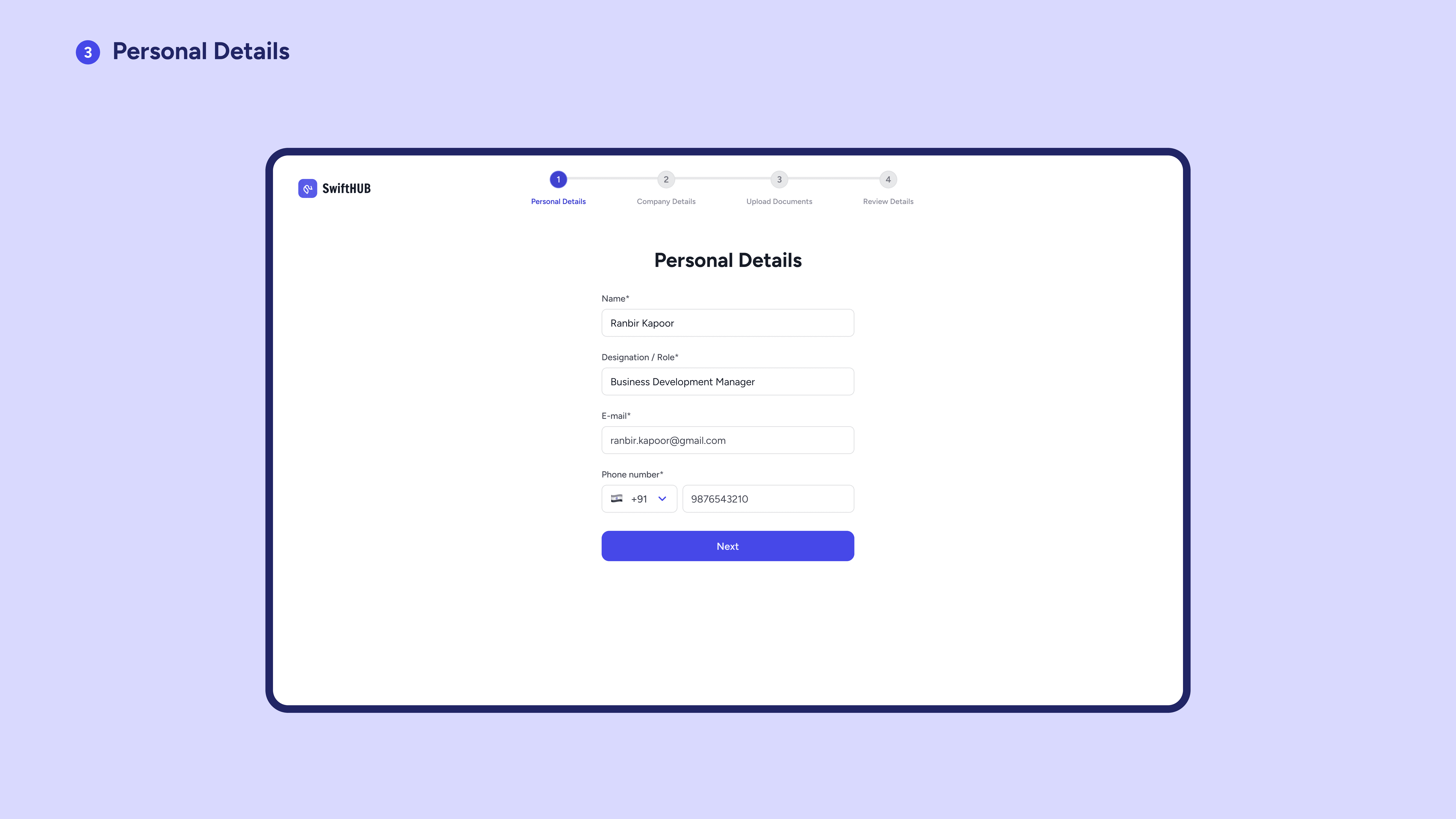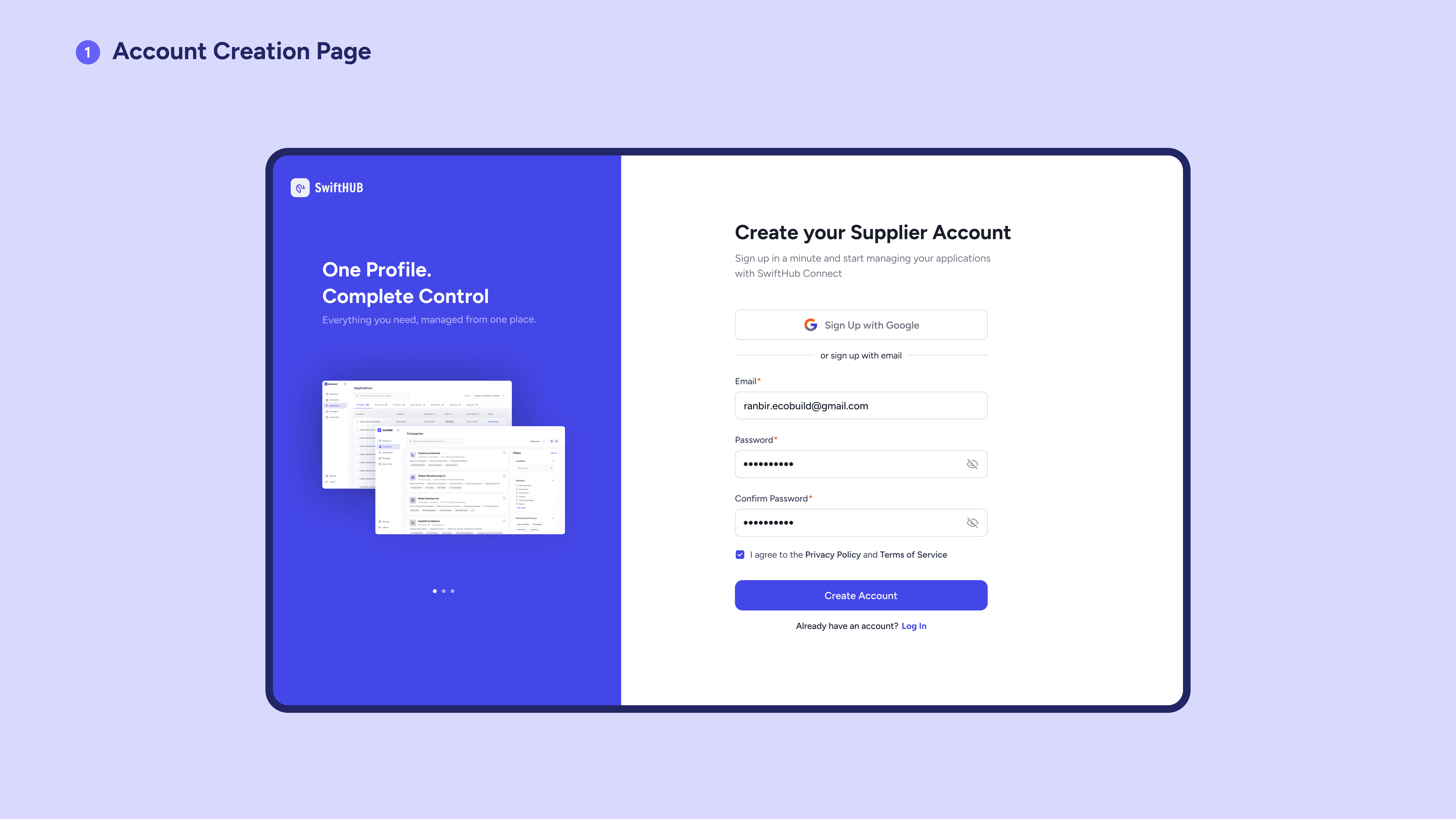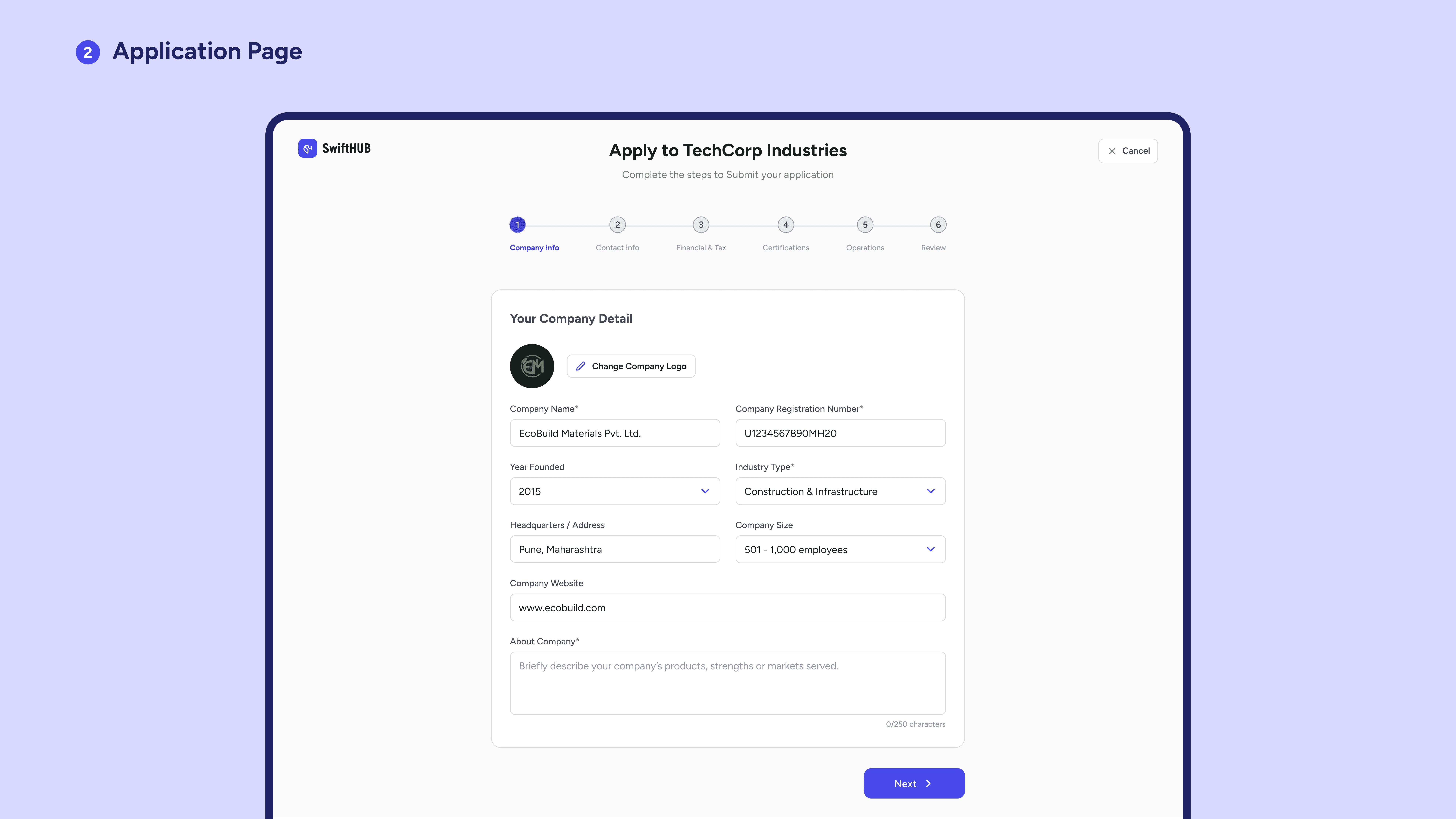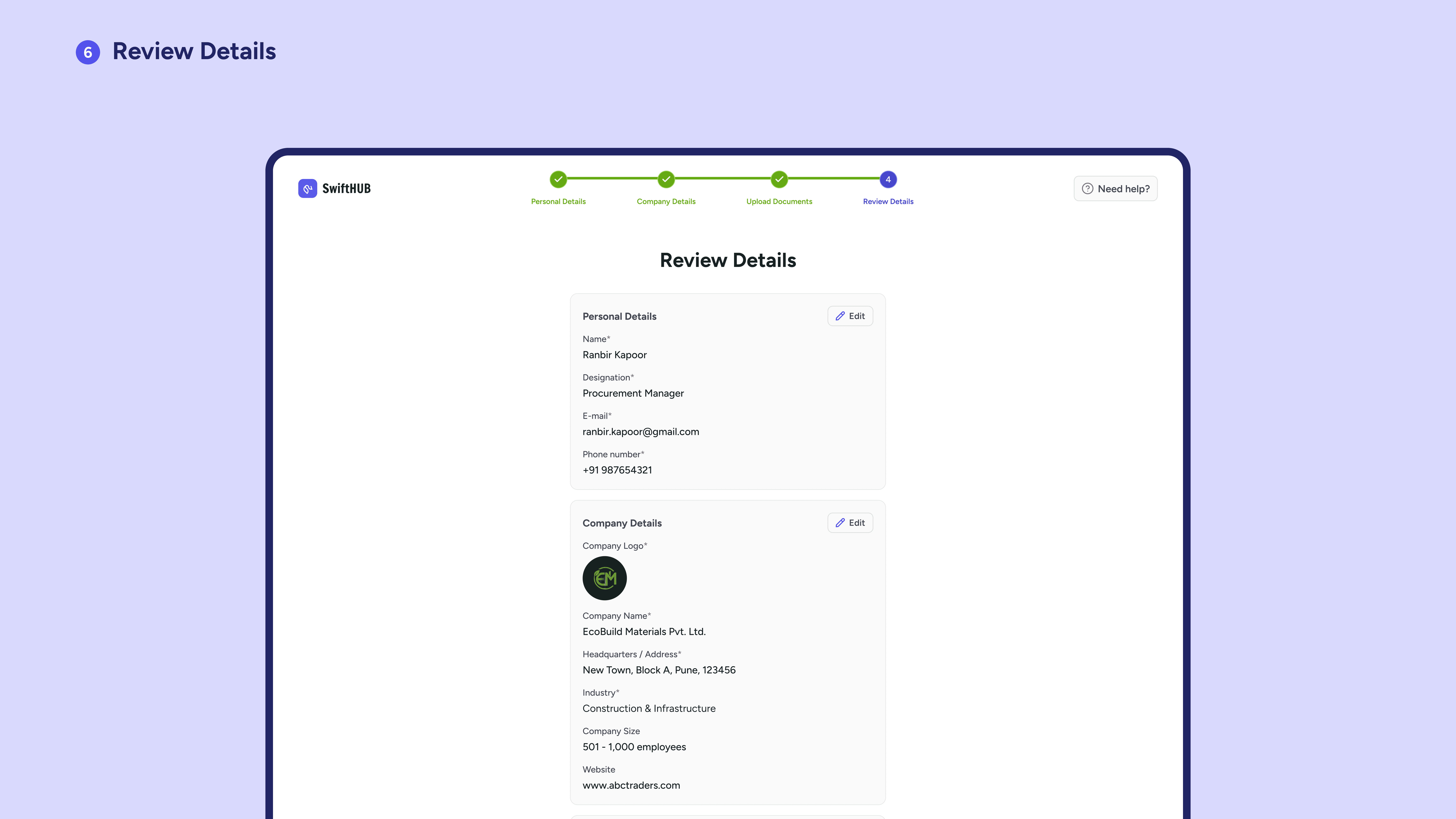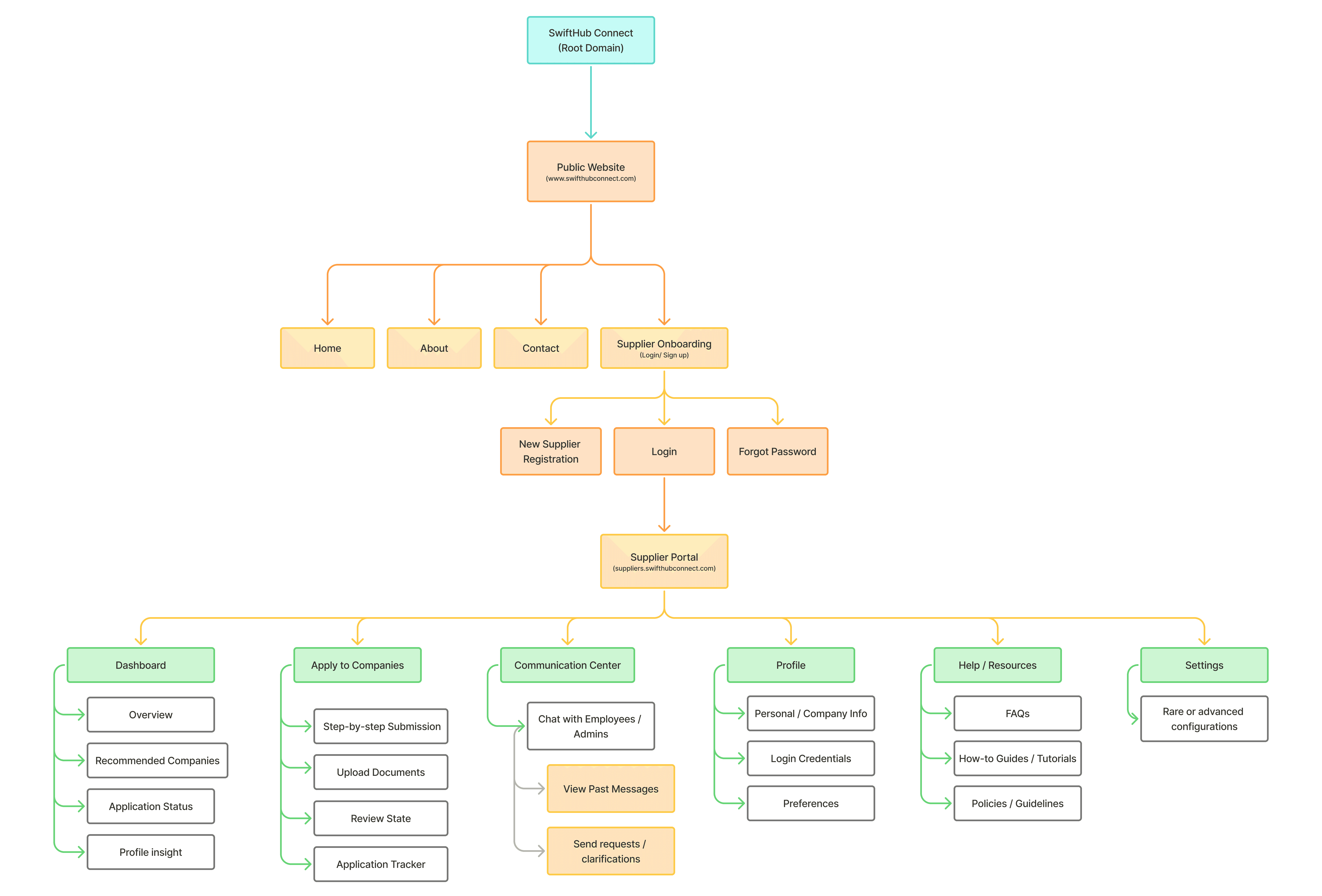 This project focuses on designing a clear and simple flow that helps suppliers create their business profile and submit their application through SwiftHub Connect.