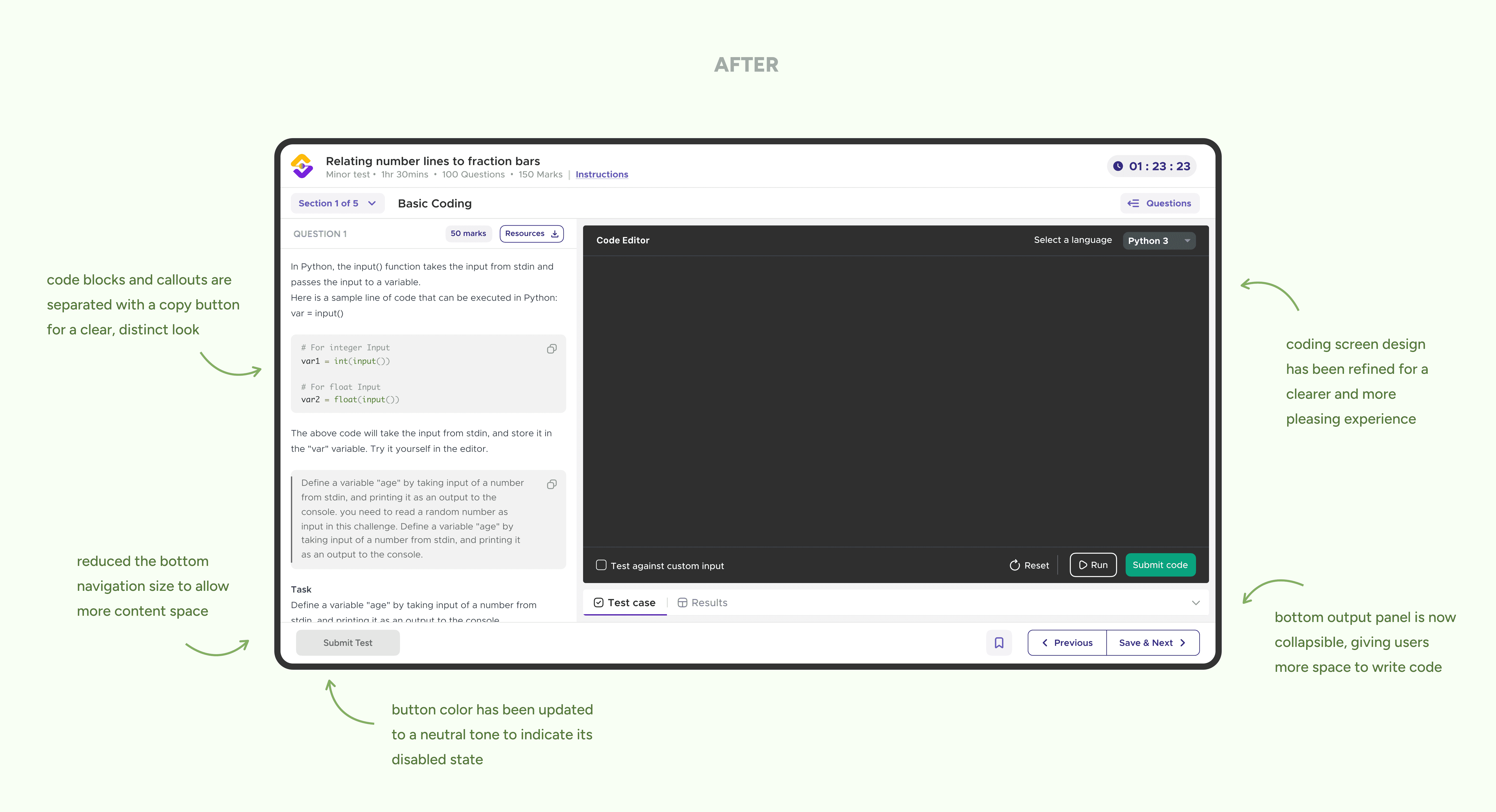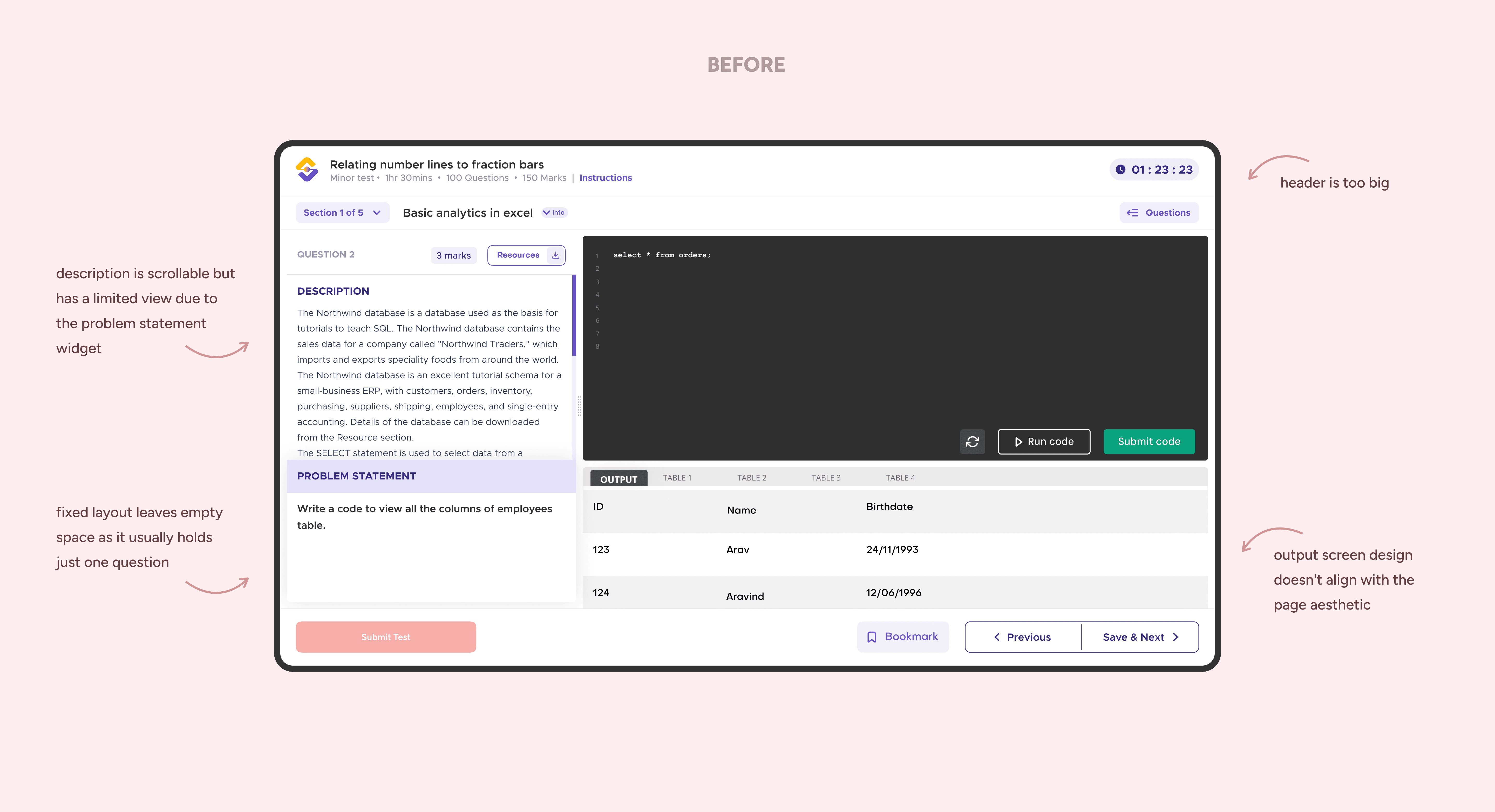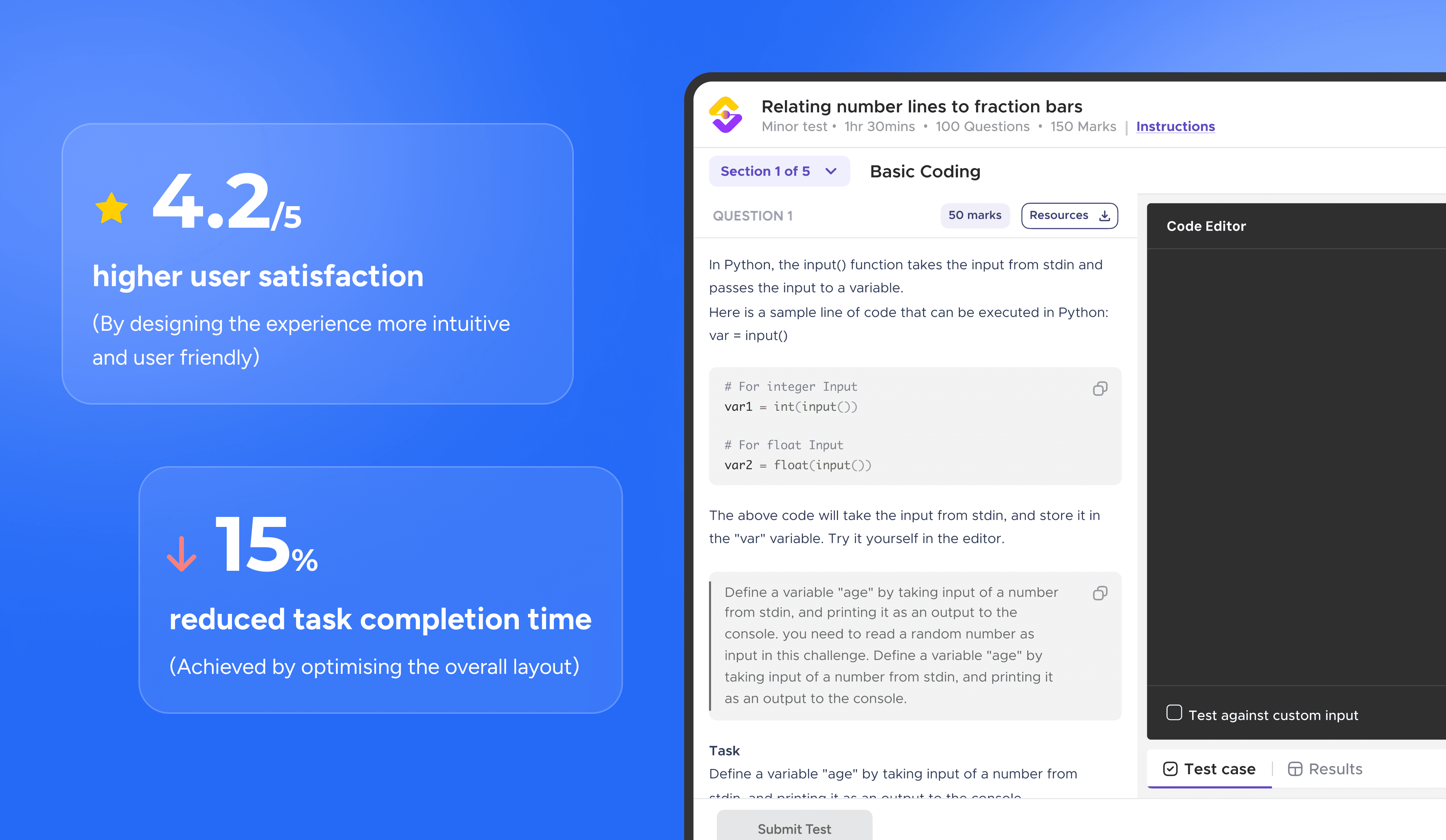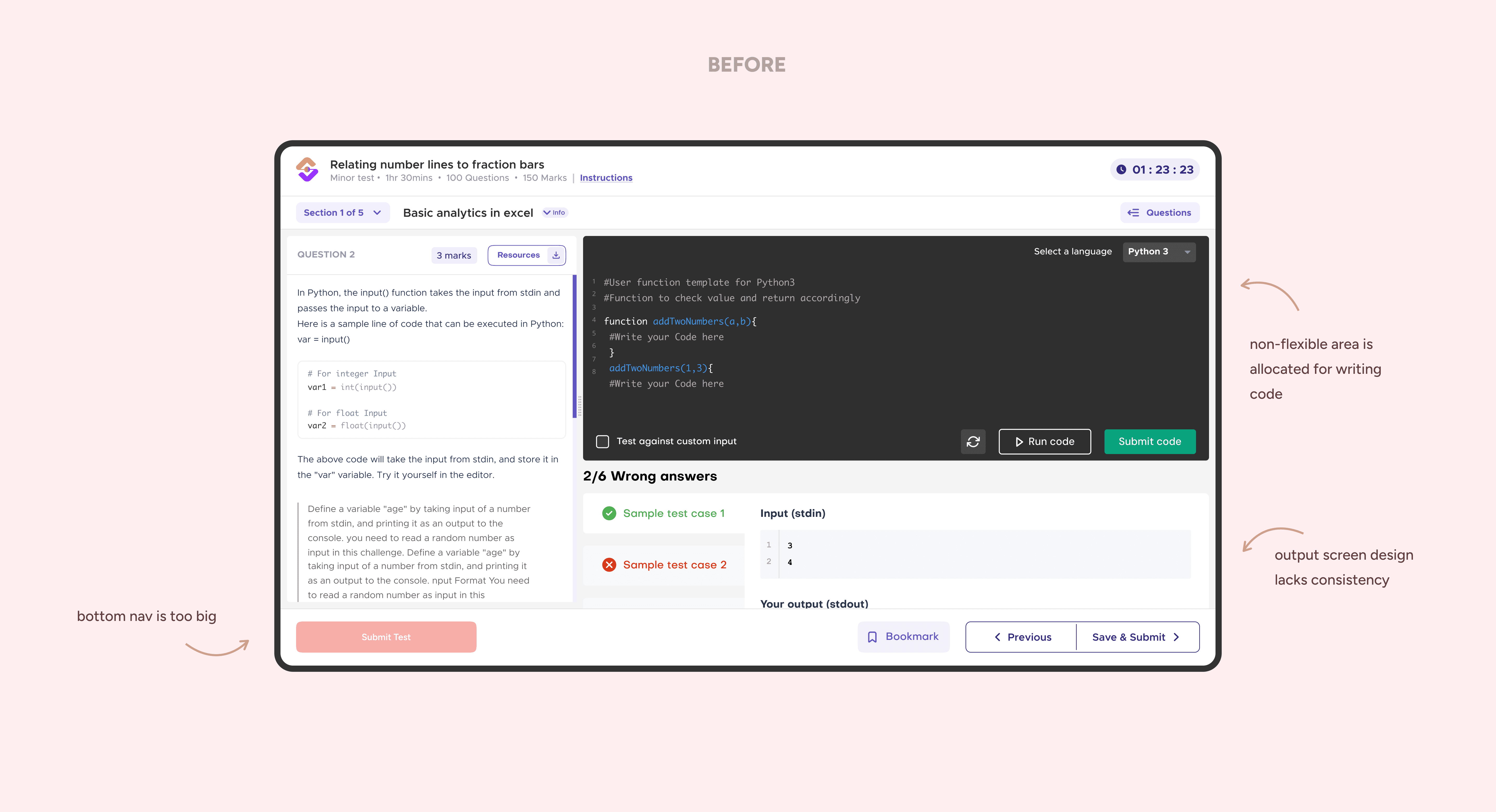 40% of users mentioned the layout felt restrictive, especially for longer coding questions